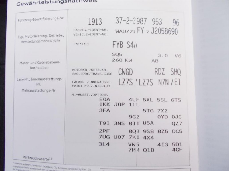Poznámka 2: TOP výbava vč. LED světel, nezáv.topení, kůže, třízónové AC, audiosyst.BANG & OLUFSEN... atd., dovezeno ze SRN, NEHAVAROVANÉ, elektronická serviska - bývá vedena v databázi AUDI + palubní infotainment, na vozidle byla provedena „dovozová“ technická kontrola a měření emisí na STK - platnost je do 03/2026 = přihlášení pouze 800,-Kč ( když si vozidlo budete přihlašovat sami ) - jdete rovnou na úřad, evidenční kontrola se nemusí dělat = kupující bude 1.majitelem v ČR, top 10 +++ nejedná se o žádný komisní prodej či zprostředkování prodeje - je to námi vykoupený vůz, na který kupujícímu poskytujeme veškeré právní záruky +++