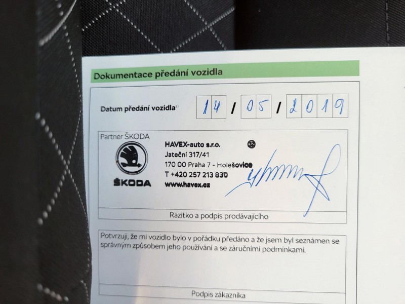 Poznámka 2: koupeno nové v ČR, 1.majitel, NEHAVAROVANÉ, elektronická servisní knížka = bývá vedena elektronicky v databázi ŠKODA ( v případě provedených prohlídek v autorizovaných a smluvních servisech ŠKODA ) + info v palubním infotainmentu + k dispozici máme výpis servisní historie vozidla, možnost odpočtu DPH +++ nejedná se o žádný komisní prodej či zprostředkování prodeje - je to námi vykoupený vůz, na který kupujícímu poskytujeme veškeré právní záruky +++