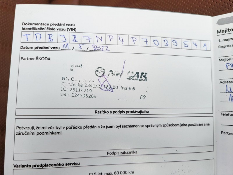 Poznámka 2: PLNÁ TOVÁRNÍ ZÁRUKA do 05/2028 / max. 100.000 km, koupeno nové v ČR, 1.majitel, NEHAVAROVANÉ, elektronická servisní knížka = bývá vedena elektronicky v databázi ŠKODA ( v případě provedených prohlídek v autorizovaných a smluvních servisech ŠKODA ) + info v palubním infotainmentu + k dispozici máme kompletní výpis servisní historie z databáze ŠKODA, top 10 , možnost odpočtu DPH +++ nejedná se o žádný komisní prodej či zprostředkování prodeje - je to námi vykoupený vůz, na který kupujícímu poskytujeme veškeré právní záruky +++