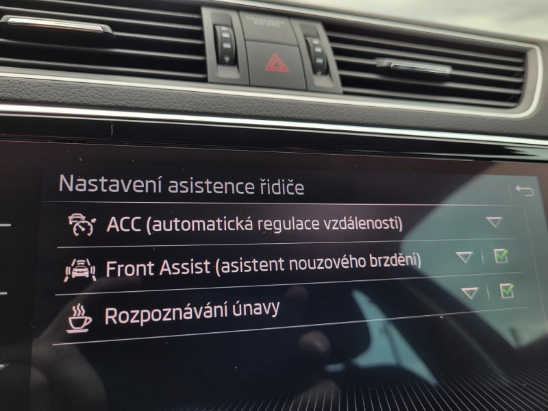 Aut. převodovka, 6 rychlostních stupňů, 7x airbag, ABS, brzdový asistent, stabilizace podvozku (ESP), protiprokluzový systém kol (ASR), asistent rozjezdu do kopce (HSA), hlídání jízdního pruhu, asistent jízdy v jízdním pruhu, sledování únavy řidiče, aut. zabrzdění v kopci, posilovač řízení, dvouzónová klimatizace, aut. klimatizace, adaptivní tempomat, tempomat, denní svícení, LED denní svícení, alu kola, plní 'EURO VI', palubní počítač, dotykové ovládání palubního počítače, digitální přístrojový štít, volba jízdního režimu, elektronická ruční brzda, satelitní navigace, parkovací senzory přední, parkovací senzory zadní, parkovací kamera, bezklíčové startování, bezklíčové odemykání, senzor světel, senzor stěračů, nastavitelný volant, multifunkční volant, vyhřívaný volant, řazení pádly pod volantem, deaktivace airbagu spolujezdce, hands free, Android Auto, Apple CarPlay, bezdrátová nabíječka mobilních telefonů, bluetooth, el. víko zavazadlového prostoru, el. okna, střešní nosič, el. sklopná zrcátka, el. zrcátka, startování tlačítkem, imobilizér, centrál dálkový, centrální zamykání, isofix, vyhřívaná sedadla, el. seřiditelná sedadla, výškově nastavitelná sedadla, senzor tlaku v pneumatikách, přední světla LED, zadní světla LED, ostřikovače světlometů, mlhovky, start-stop systém, USB, autorádio, digitální příjem rádia (DAB), venkovní teploměr, vyhřívaná zrcátka, klimatizovaná přihrádka, dělená zadní sedadla, zadní loketní opěrka, zadní stěrač, tónovaná skla, přední pohon, výsuvné opěrky hlav, malý kožený paket.
